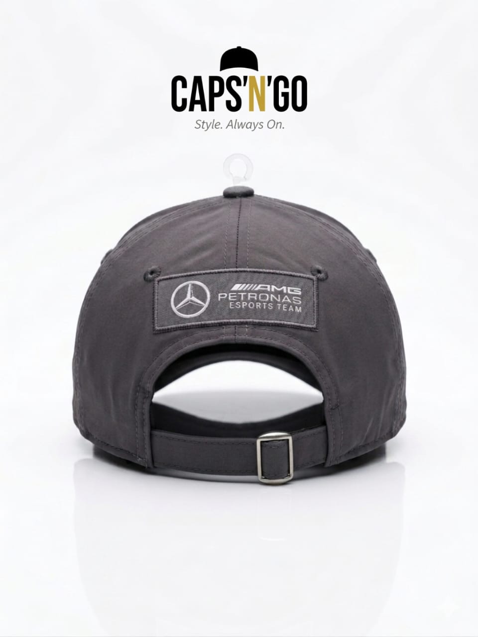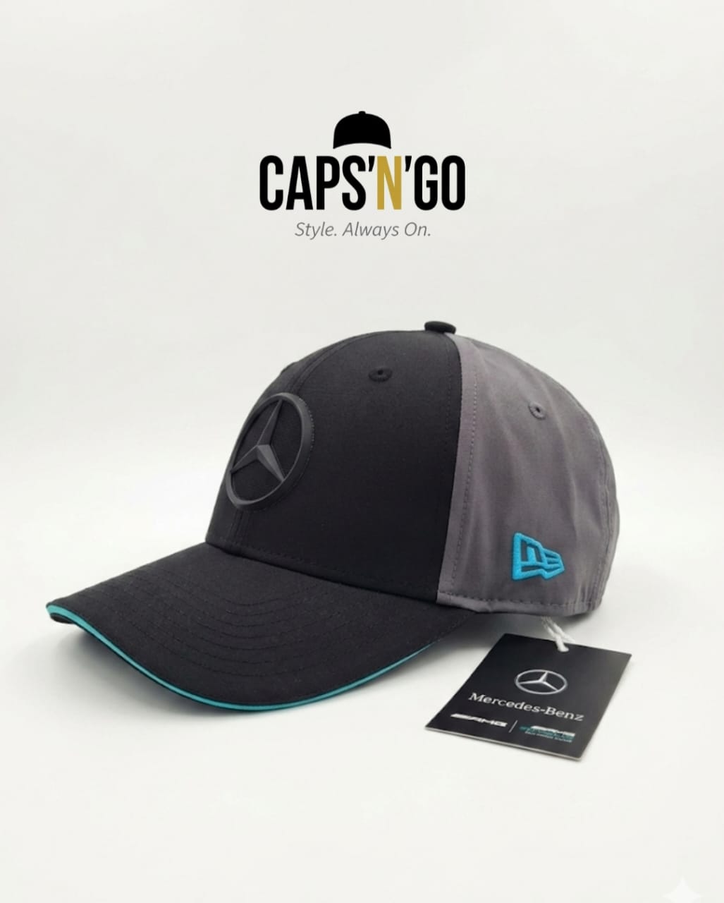مرسيدس بنز AMG نيو إيرا كاب تعاون حصري بين عملاقين : مرسيدس بنز AMG بيتروناس F1 ونيو إيرا. تصميمها الثنائي الأسود والرمادي الداكن مع لمسات التركواز الأيقونية لفريق السباق يجعلها قطعة كولكتور لعشاق الفورمولا 1 والموضة الفاخرة.