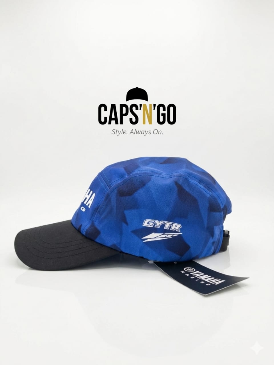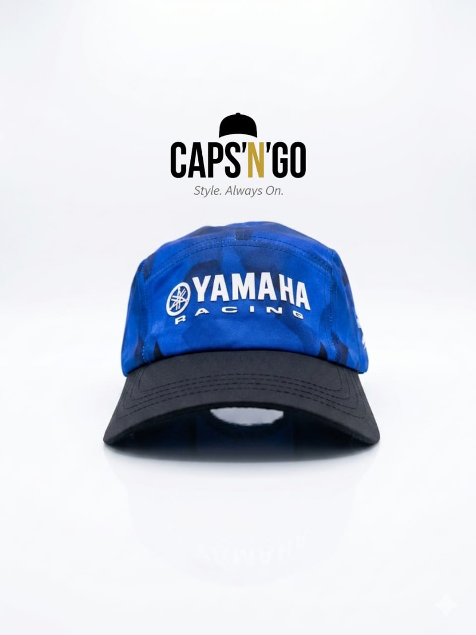 يامها ريسينغ كاب قبعة مستوحاة مباشرة من عالم سباقات الدراجات النارية. بتصميمها الكامو الأزرق الكهربائي وحافتها السوداء المتباينة، تحمل روح المنافسة في إطلالة عصرية لا تمر مرور الكرام.